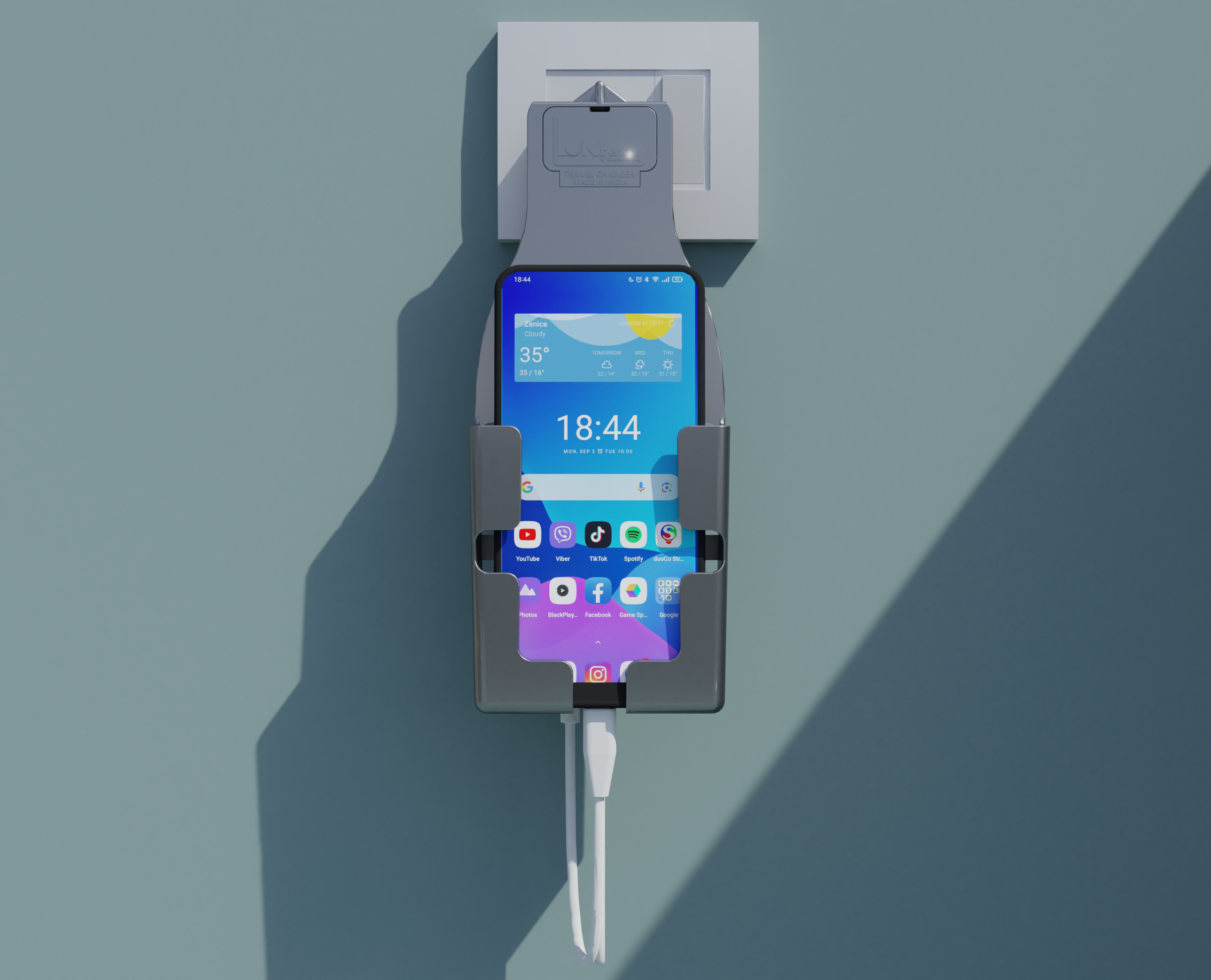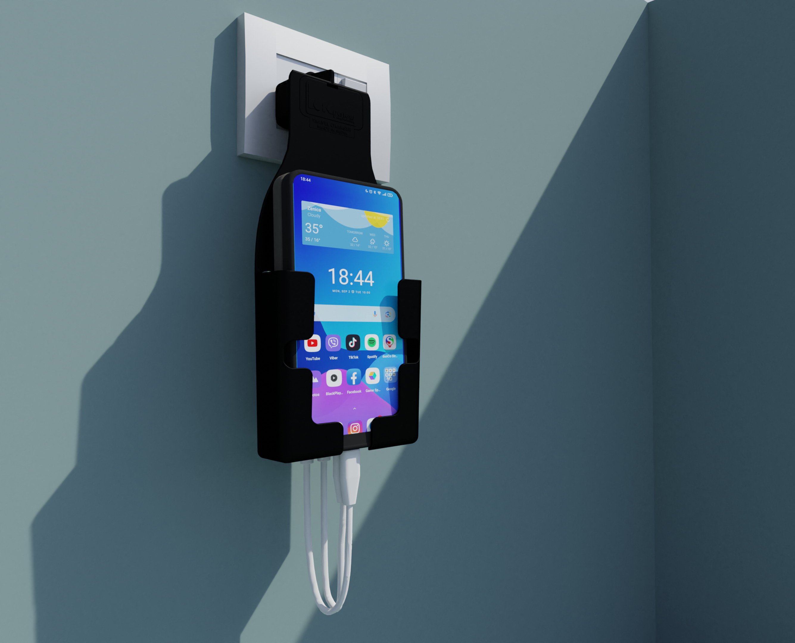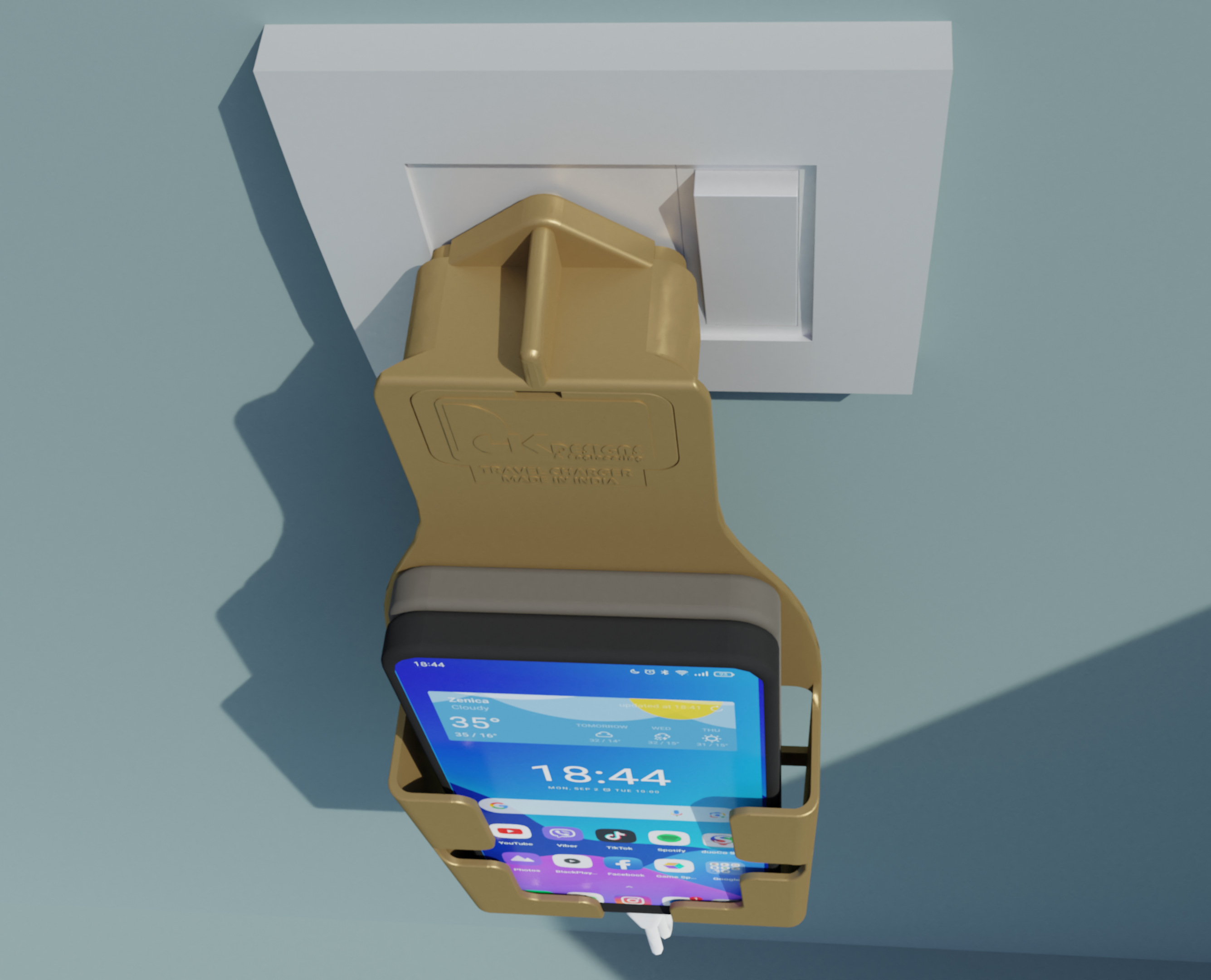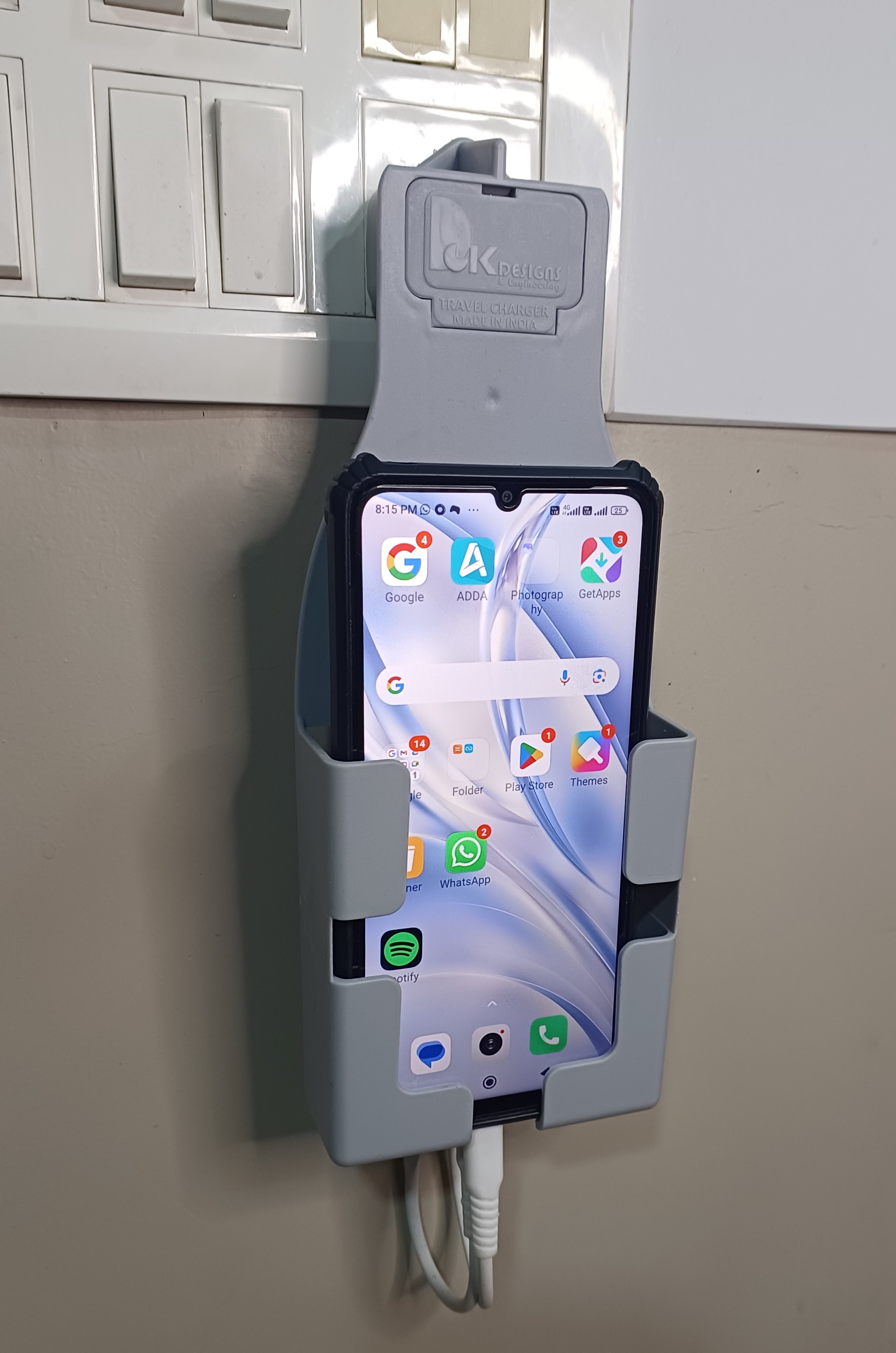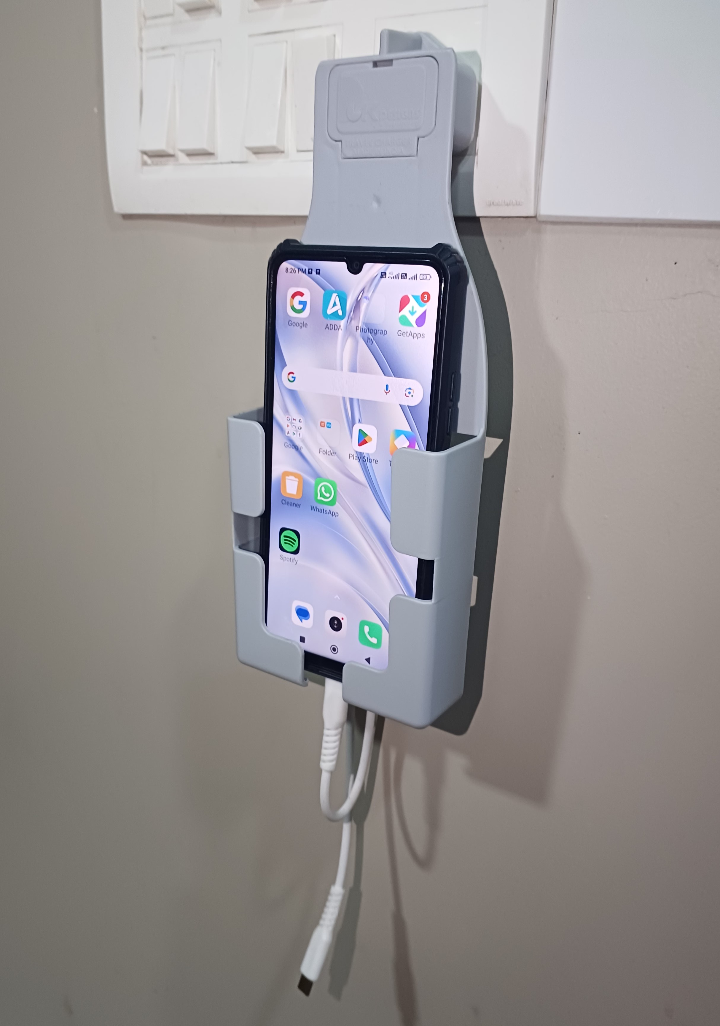 Tired of phones dangling mid-air or lying on the floor while charging? Our Mobile Charger Wall Holder is the ultimate solution — especially near standalone plug points where there's no nearby surface. This sleek wall mount not only holds your phone securely while charging, but also features dual USB ports for fast charging two devices at once.